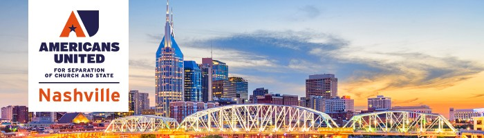 The Nashville Chapter of AU, founded in 2001, works to promote and protect religious freedom in Tennessee and in Nashville by educating, speaking out, monitoring state and local developments, and rallying citizens to defend religious liberty. It works with local organizations, community activists, faith leaders, and houses of worship to safeguard church-state separation.
