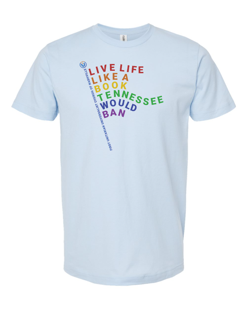 “Live Life like a Book Tennessee Would Ban” pride shirts are now available on the FUUN website, with the proceeds going to help fund their pride activities for next year.