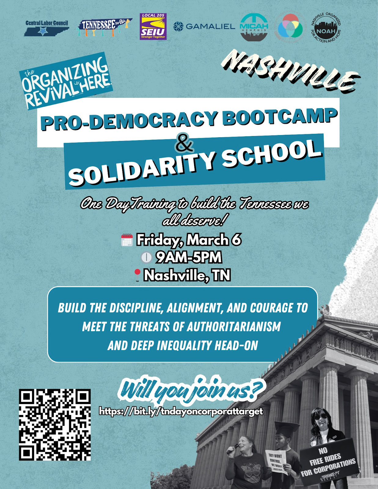NOAH and Gamaliel are hosting an Organizing Revival Bootcamp where we will dig deeper into the work we need to do to topple authoritarianism in our city, state, and country.
